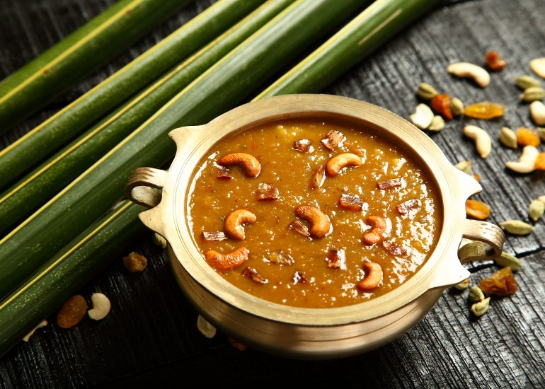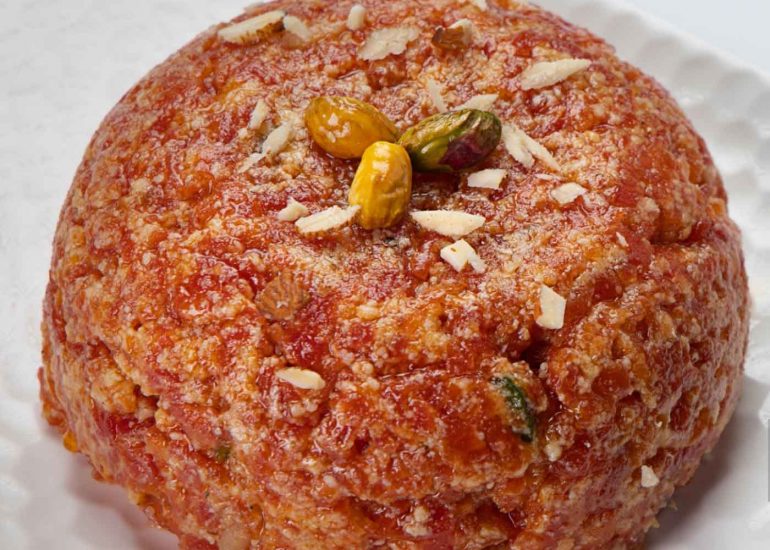 An Indian dessert of fried dough balls soaked in a sweet, thick sugar syrup