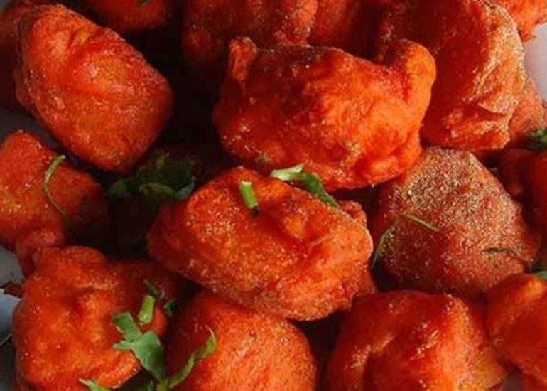 Crispy battered cauliflower with spices and is deep fried.