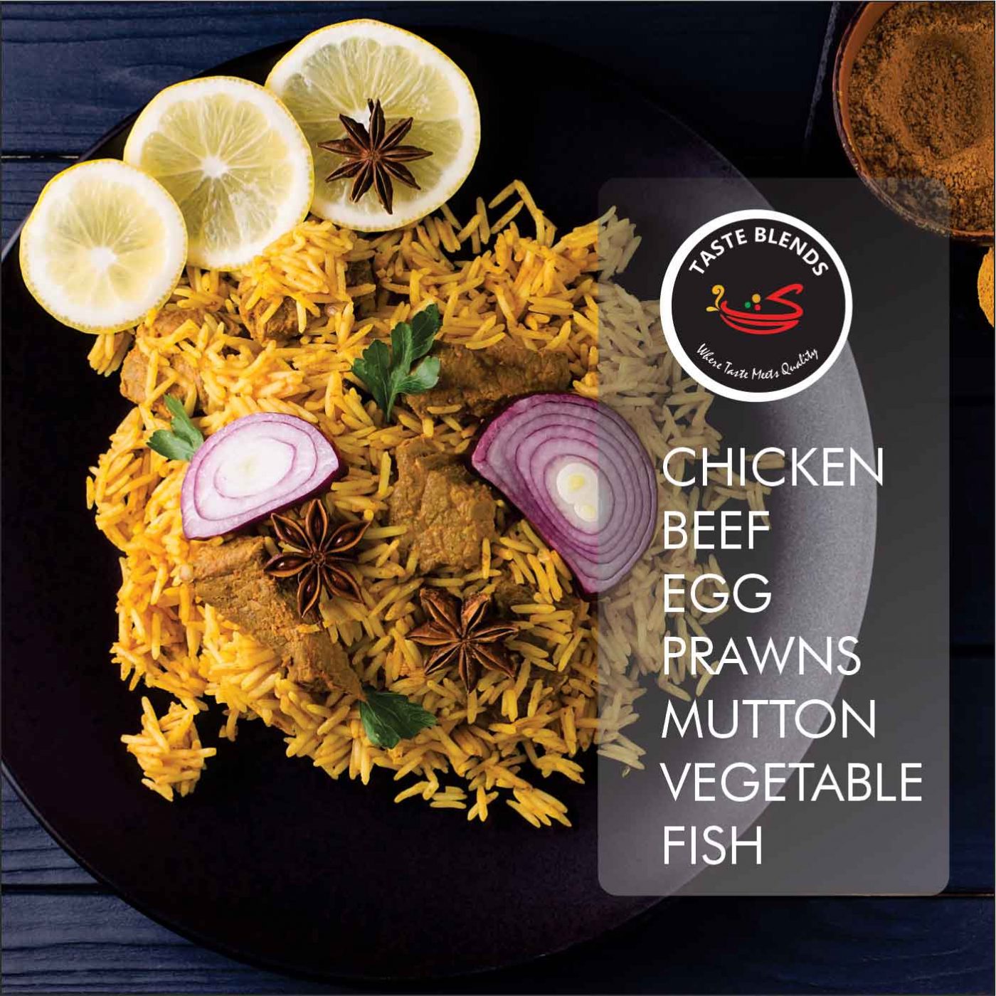 Basmati rice flavored with spices and layered with thick gravy of vegetables, meat, fish or boiled eggs of choice.